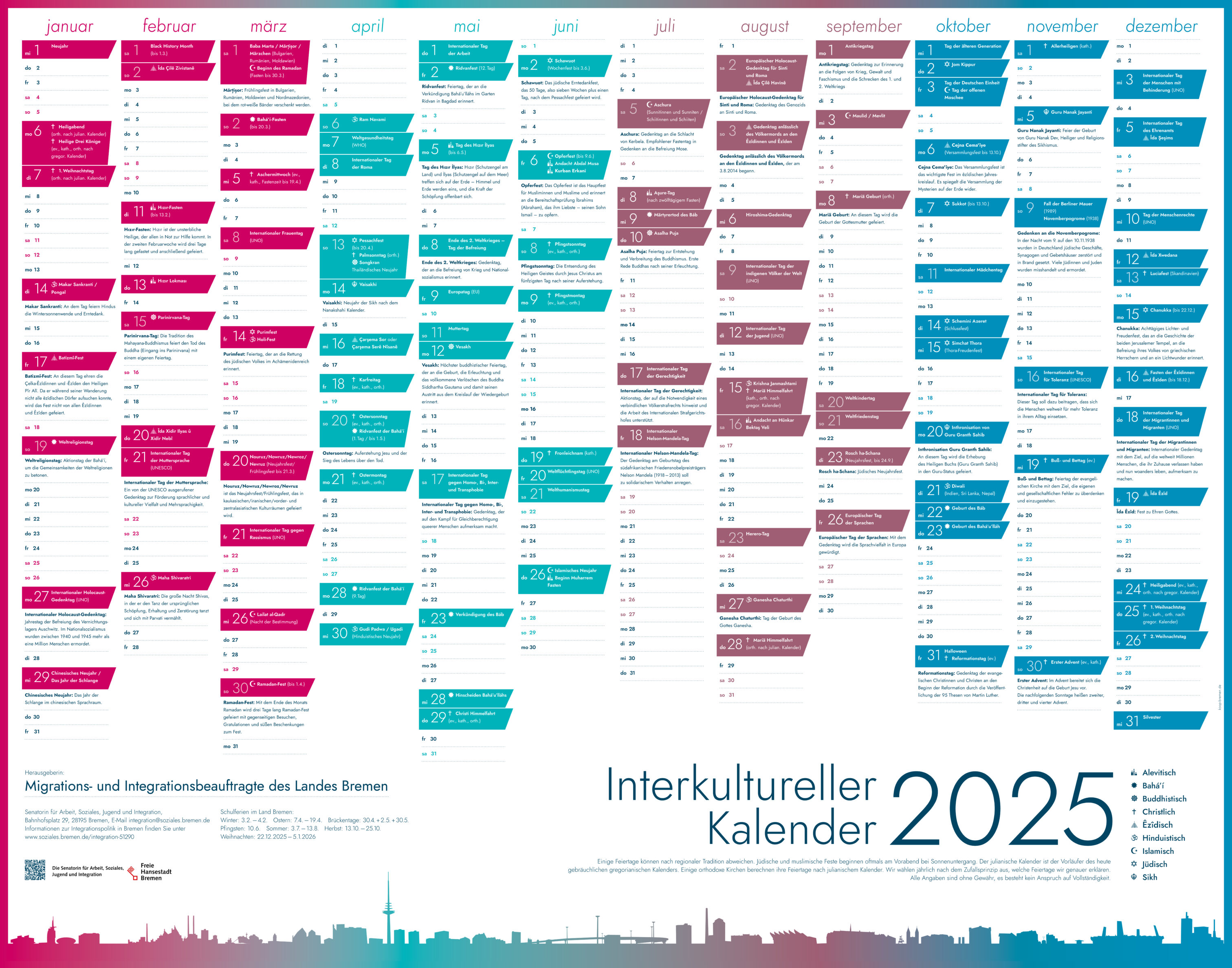 Der Interkulturelle Kalender ist ab sofort kostenlos erhältlich beim Bremer Rat: